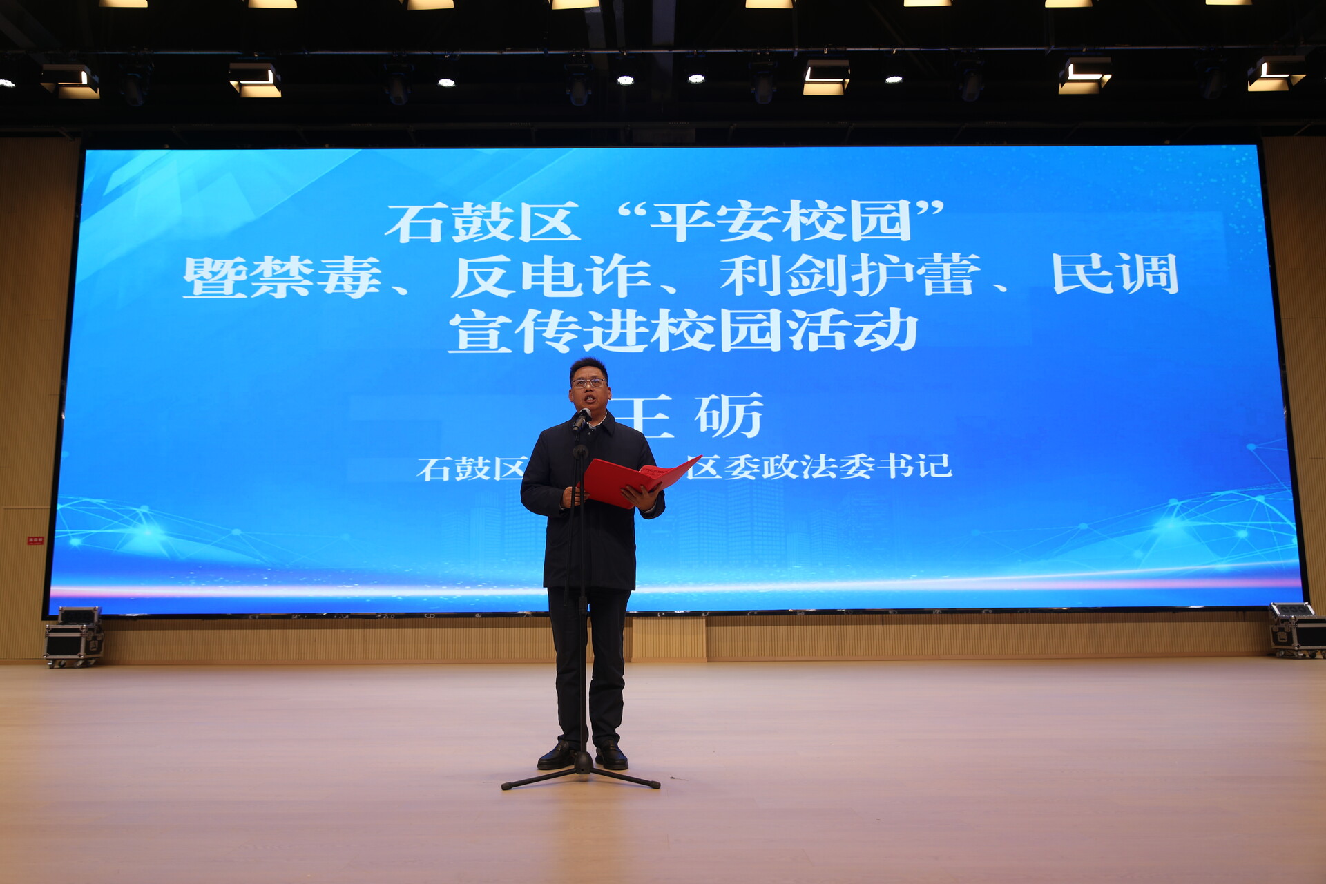 10月23日,石鼓区"平安校园"暨禁毒、反电诈、利剑护蕾、民调宣传进校园活动在石鼓华侨城成章实验中学举行。区委常委、区委政法委书记王砺出席并讲话,副区长、区公安分局局长何玉竹主持,相关单位及全校师生1000余人参加。