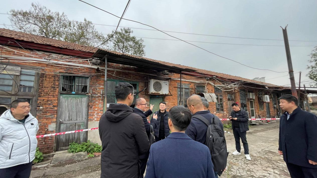 省市区住建部门、五一街道对五一路32号危房整治前现场调研。