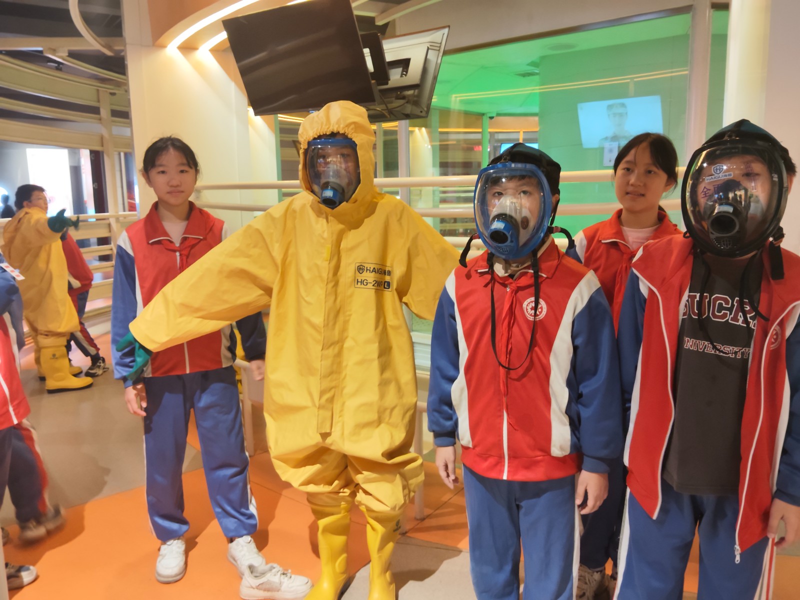 互动体验区成为研学核心阵地。防化服演练中,同学们在讲解员指导下完成防护装备穿戴,在闷热与厚重中体会救援人员的艰辛,同时掌握基础防护技能;地震模拟平台上,大家规范完成蹲伏、护头等避震动作,熟练掌握应急避险要领;心肺复苏体验台前,同学们精准模仿按压与呼吸动作,扎实学习急救技能。