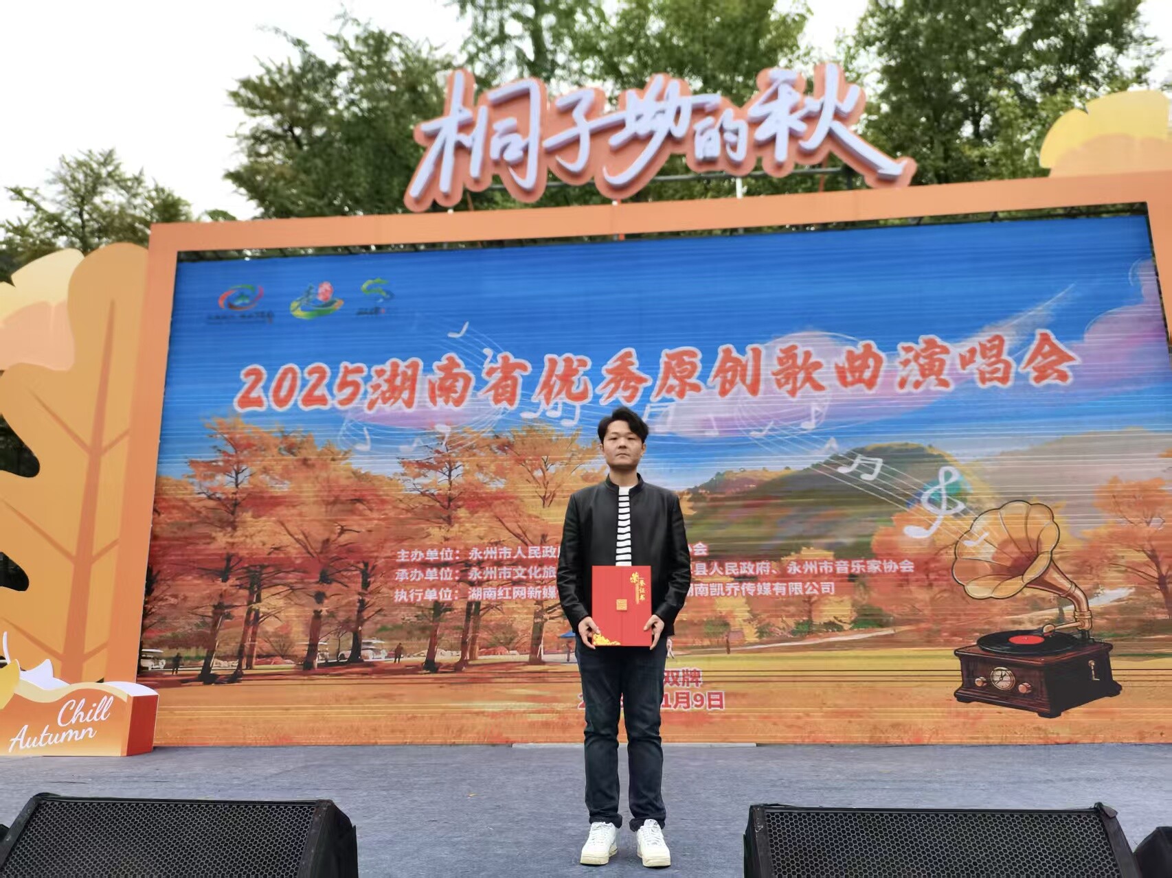 秋染潇湘歌飞扬,文脉传承谱新章。11月9日,“桐子坳的秋”2025湖南省优秀原创歌曲演唱会在永州双牌温情开唱,由衡阳市石鼓区音乐家协会选送的原创歌曲《石鼓谣》凭借深厚的文化底蕴与鲜明的艺术特色,从众多作品中脱颖而出,荣获“新时代 新湖南”——第十一届潇湘好歌原创歌曲征集活动“优秀作品”奖,当日在演唱会现场完成首唱并举行颁奖仪式,用旋律为湖湘文化再添亮色。