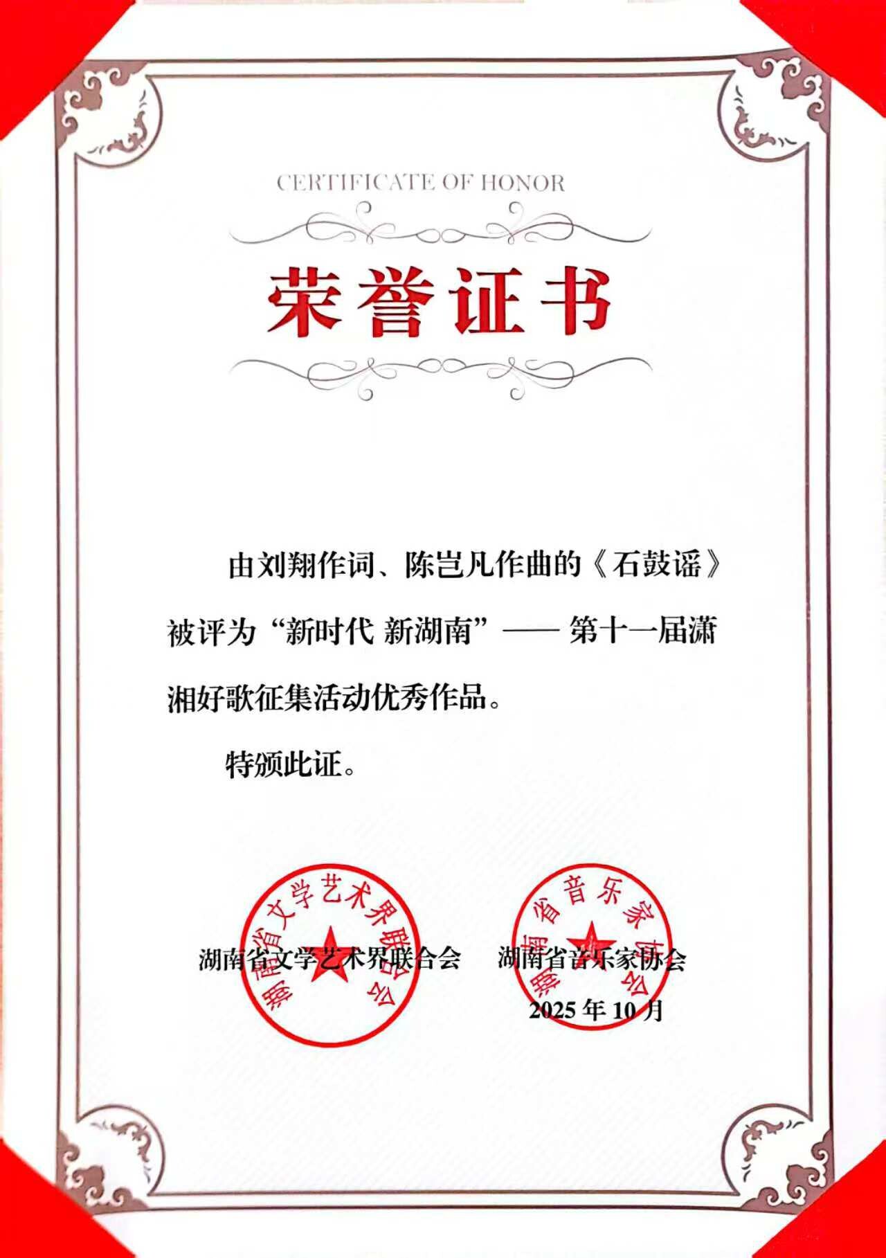 石鼓飞歌耀潇湘!原创歌曲《石鼓谣》斩获第十一届潇湘好歌“优秀作品”奖