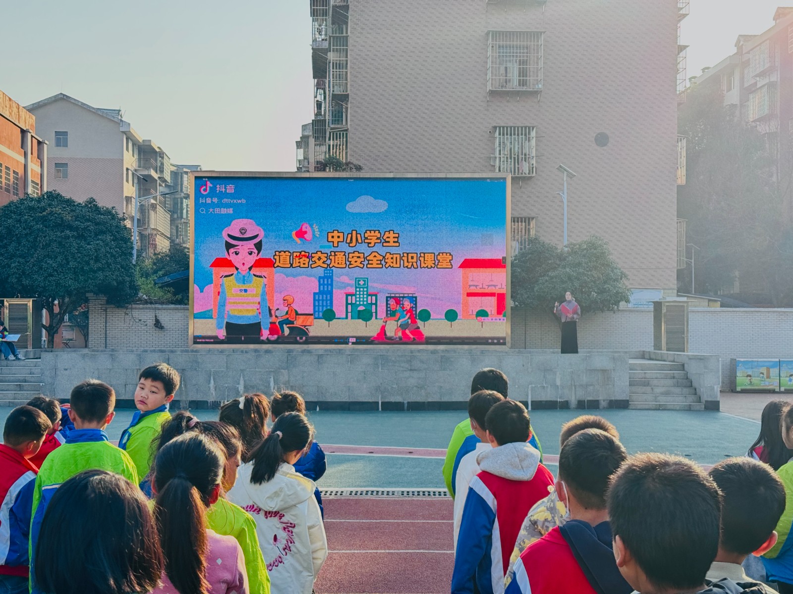 活动中,主讲老师通过趣味提问解读“122”报警电话及交通安全日意义,结合常见应急电话帮助学生记忆;通过播放警示短片,直观呈现闯红灯、翻越护栏、车辆盲区滞留等典型事故案例,以触目惊心的画面揭示违规行为的严重后果;课程重点梳理步行、乘车、骑行三大场景安全准则,规范学生出行行为。老师还倡议学生争做交通安全践行者、监督员与宣传员,带动家人文明出行。