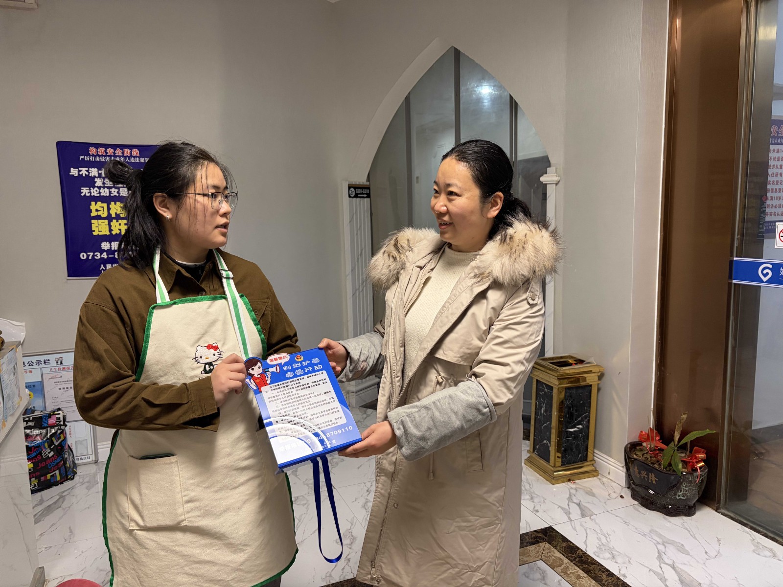 行动中,工作人员直奔各经营场所,以“政策解读+案例警示+资料派送”的组合方式,向经营者精准传递护蕾要求,详细解读《中华人民共和国未成年人保护法》相关规定,明确网吧、电竞场所“未成年人禁入”的硬性红线,压实小宾馆的未成年人住宿核查与报告责任,并结合真实案例明晰违规经营的法律边界,引导经营者知敬畏、守底线。同时,在各场所前台统一布设“利剑护蕾”宣传警示牌,直观呈现未成年人保护“五必须”核心要义,并发放2000余份漫画图解折页,以生动形式解读防性侵要点、阐明强制报告制度,用通俗语言厘清关键责任,让护蕾知识易懂易记、入脑入心。