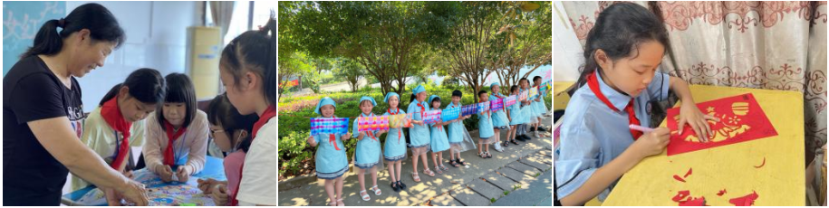 课程创新扎根衡阳本土,以四大特色推动劳动教育从“乡土资源”向“文化自信”升华:“非遗活态传承”将传统剪纸、刺绣、扎染等技艺融入《奶奶的女红》,让非遗从“博物馆”走进“课堂”;“农具智慧传承”《爷爷的农具》课程以传统农具为载体,学生操作农具体验“耕读传家”的湖湘农耕精神,深化劳动价值认知;“农耕场景再造”依托衡阳“鱼米之乡”的农业优势,《爸爸的菜园》还原湘江流域水稻种植全流程,让学生在田间体悟劳动智慧;“节庆文化浸润”《妈妈的厨房》结合衡阳“咸鸭蛋”“艾叶粑”等饮食习俗,烹制乡土味道,构建“劳动—民俗—情感”三位一体的育人模式。