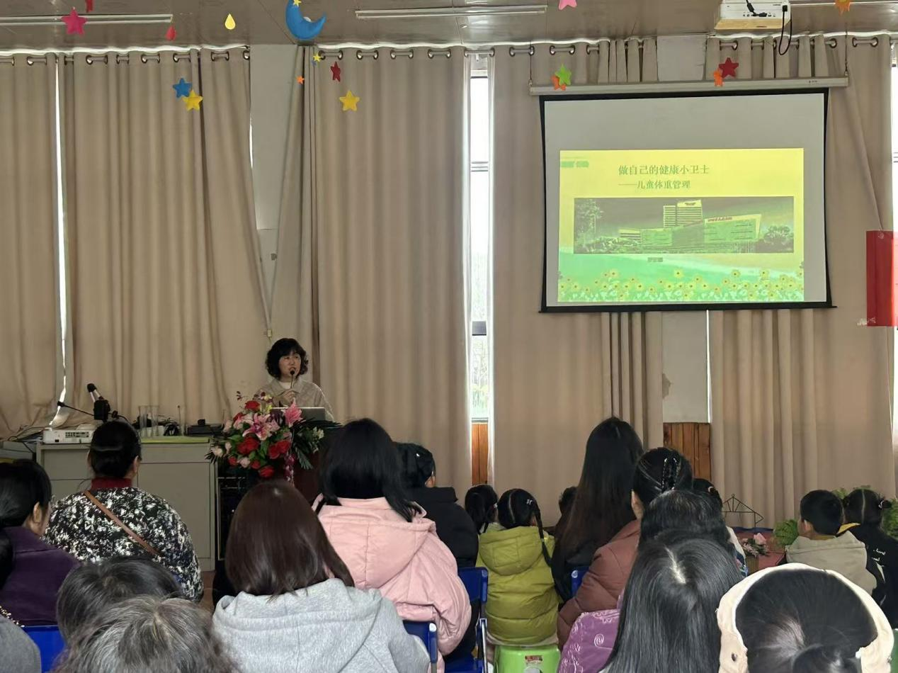 首场活动3月6日在雁栖湖幼儿园举行,特邀市妇幼保健院专家梁主任、谢医生分别围绕“学龄前儿童口腔保健”和“守护孩子的‘远视储备’——幼儿园小朋友近视防控”主题开讲。梁主任面向小朋友仔细讲解了护牙知识,包括乳牙保护、科学刷牙方法及龋齿预防知识,谢医生则向家长重点普及远视储备概念及近视防控要点,强调户外活动与科学用眼的重要性。第二场讲座于3月10日在明翰路幼儿园开讲。罗丽娜老师以儿童体重管理为重点,结合儿童生长发育特点,对幼儿均衡膳食、合理运动等进行健康指导,帮助家长科学应对儿童超重或消瘦问题。并着重提出“注意用眼习惯、每日户外活动2小时”的观点,为家长和教师讲解幼儿近视预防及远视储备保护的核心要点。