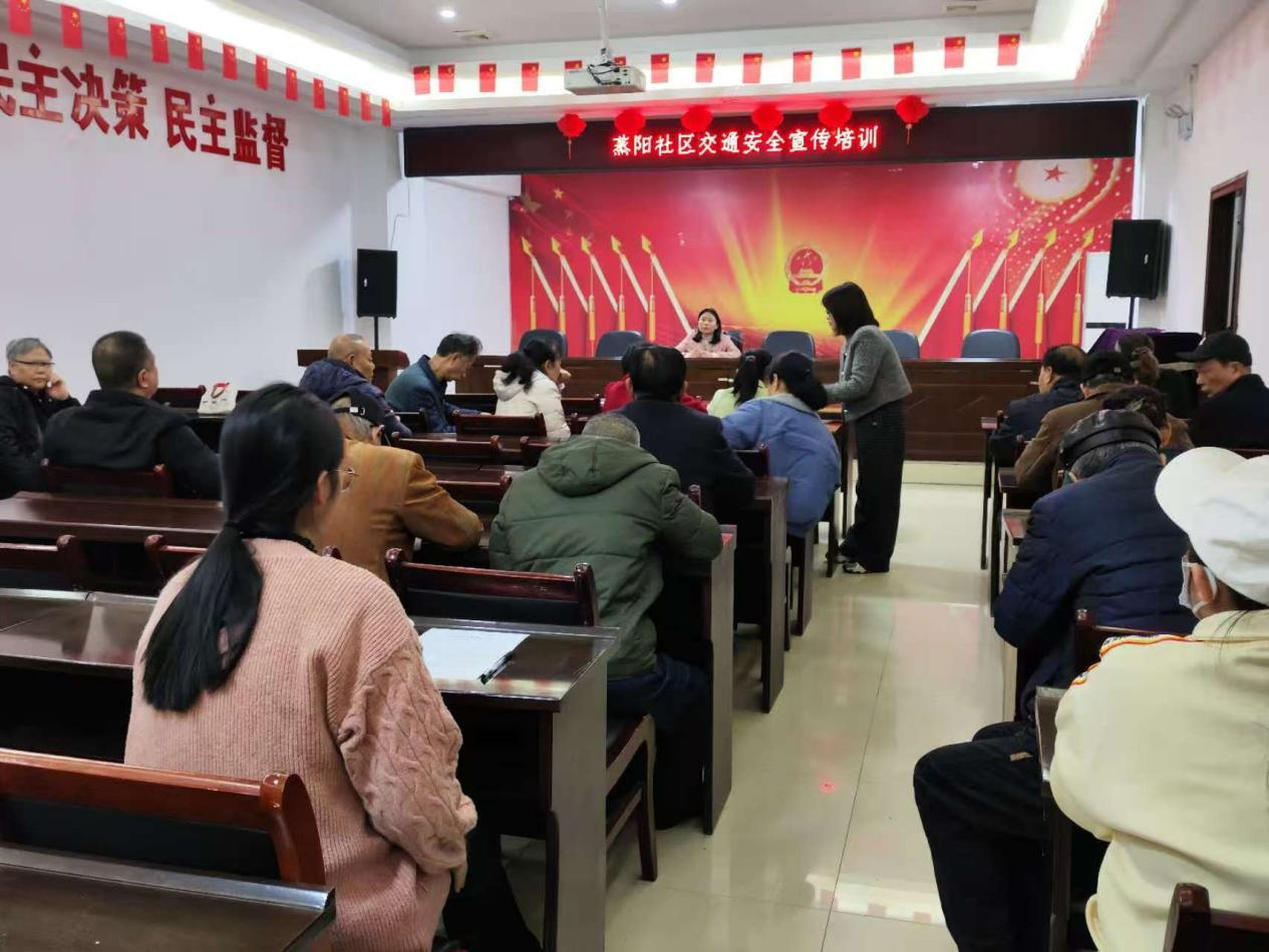 蒸阳社区地处老城区中心,道路窄、岔口多、车流密。连日来,社区紧盯居民日常出行中的“小习惯”,开展交通安全知识培训和现场劝导,把安全提醒做到群众身边。