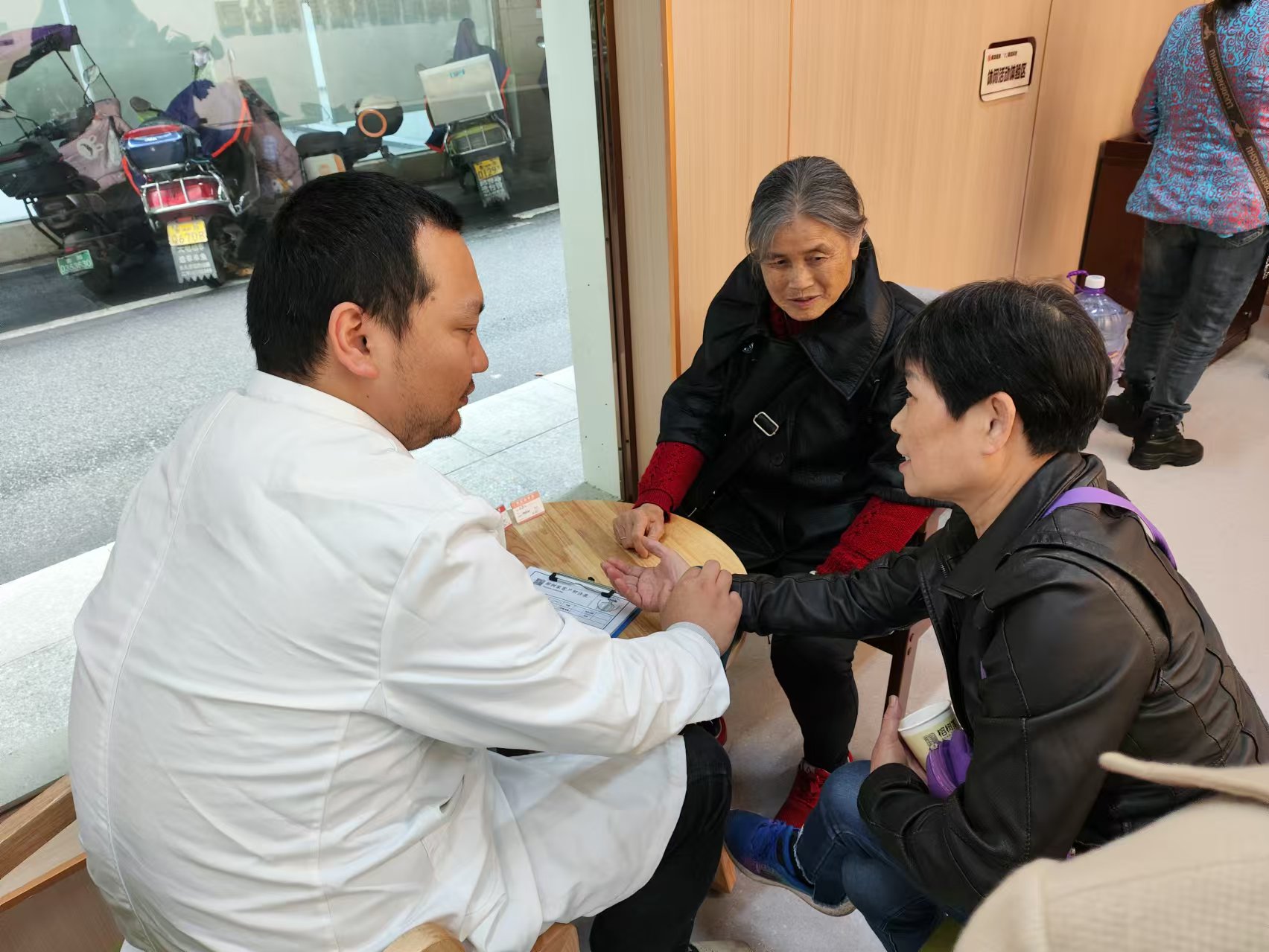活动现场还安排了中医义诊,医生为老人们把脉、看舌苔、测量血压,针对失眠、健忘、头晕等常见问题提供药膳调理和穴位按摩建议,深受欢迎。