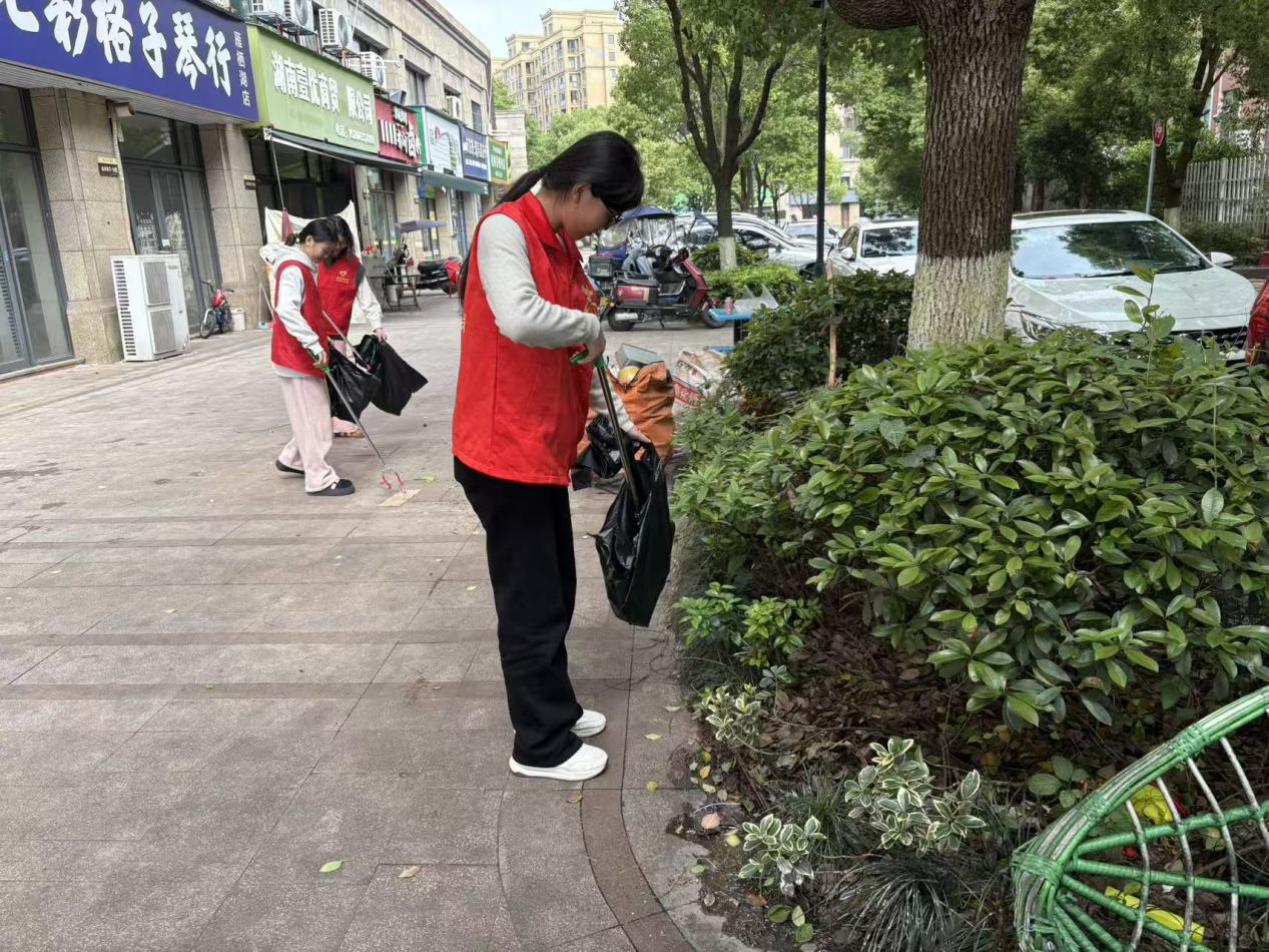 活动现场,青年志愿者们身着红马甲,携带扫帚、垃圾夹、铲子、垃圾袋等工具,分工协作、热情高涨。大家聚焦社区主干道、楼道角落、公共设施等重点区域,全面开展清洁整治。志愿者们仔细清扫路面纸屑、落叶、烟头,俯身捡拾草丛深处的白色垃圾与杂物;耐心铲除墙面、单元门上顽固的小广告 “牛皮癣”;清理楼道堆积杂物,规整乱停放非机动车,不放过任何一处卫生死角。