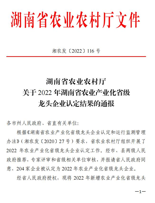 喜讯!石鼓区再添一家农业产业化省级龙头企业