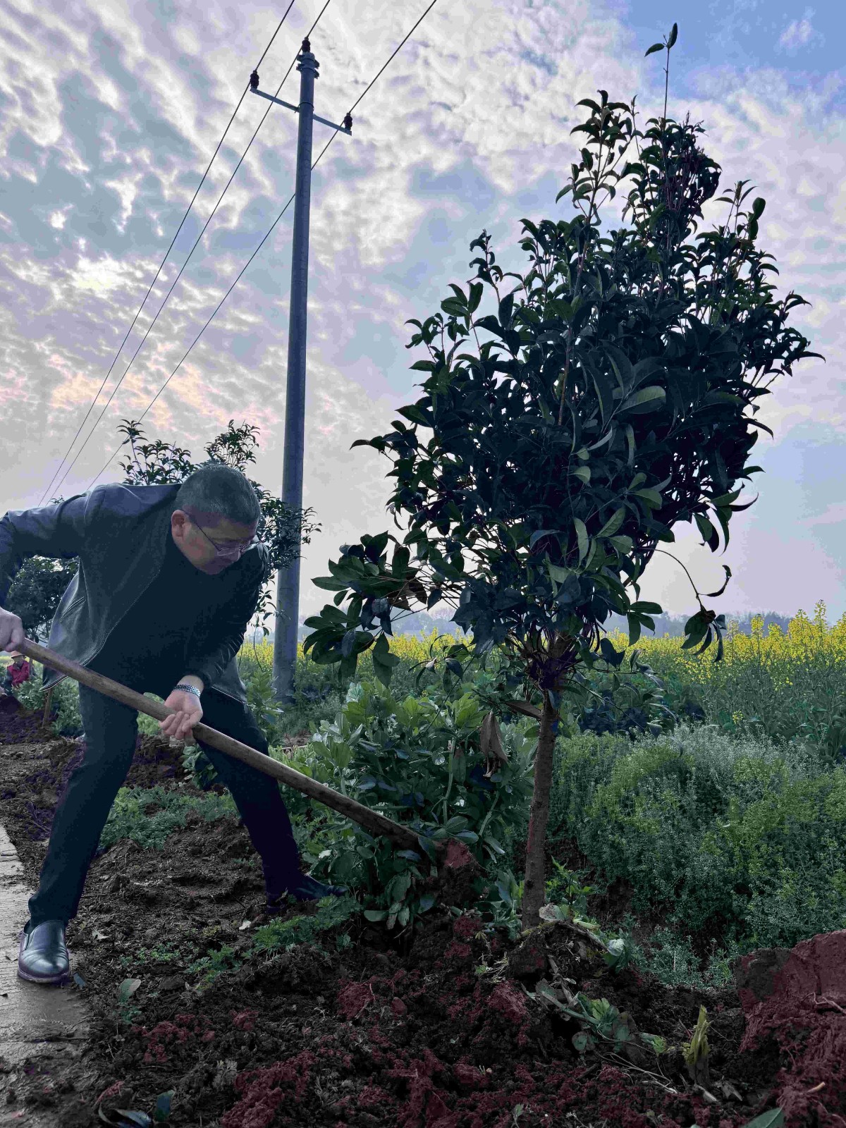 活动中,大家个个身体力行,争当绿美践行者,挥铲舞锄,刨土挖洞,填坑夯苗、提桶浇水,将一棵棵绿植栽植在土壤中,为裸露泥土增添了浓浓绿意,宣传绿美生态建设,弘扬绿色新风。看着眼前那浓浓绿色,虽然大家脚下全都沾满了泥土,头上也渗出了汗水,但眼前这一片新生的绿意却让大家满心都是欢喜。